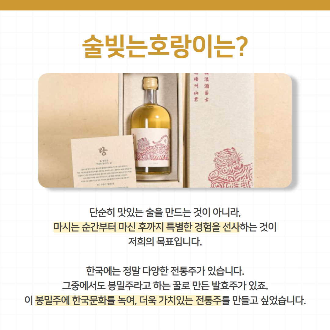 이 봉밀주에 한국문화를 녹여, 더욱 가치있는