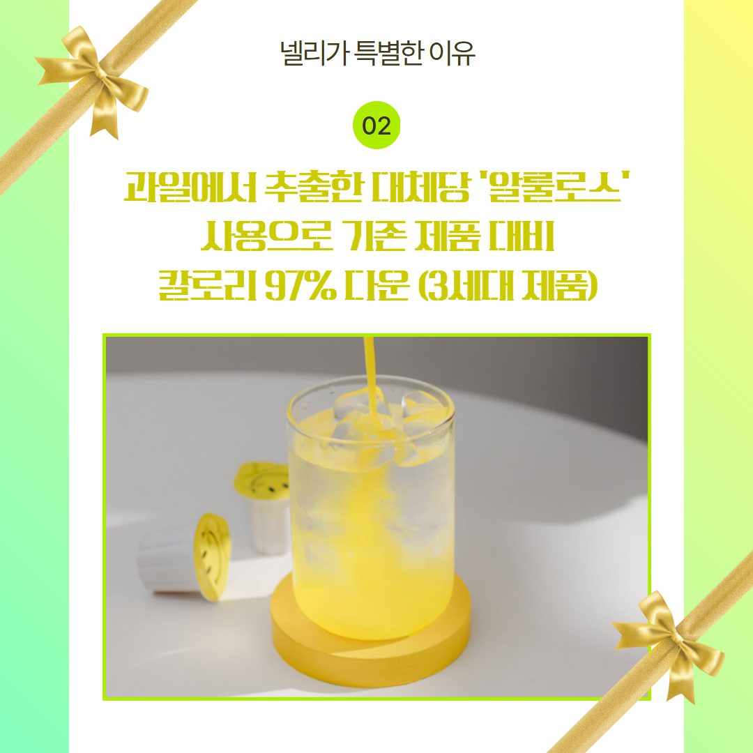 기존 제품 대비 칼로리 97% 다운 (3세대 제품)