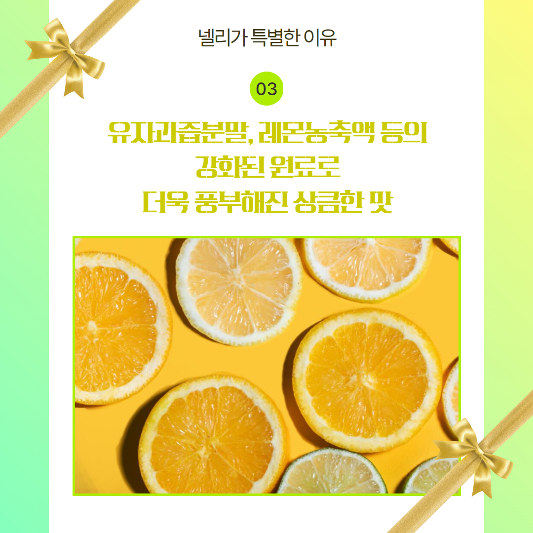 (1캡슐 - 1.6kcal), 유자과즙분말, 레몬농축액 등이