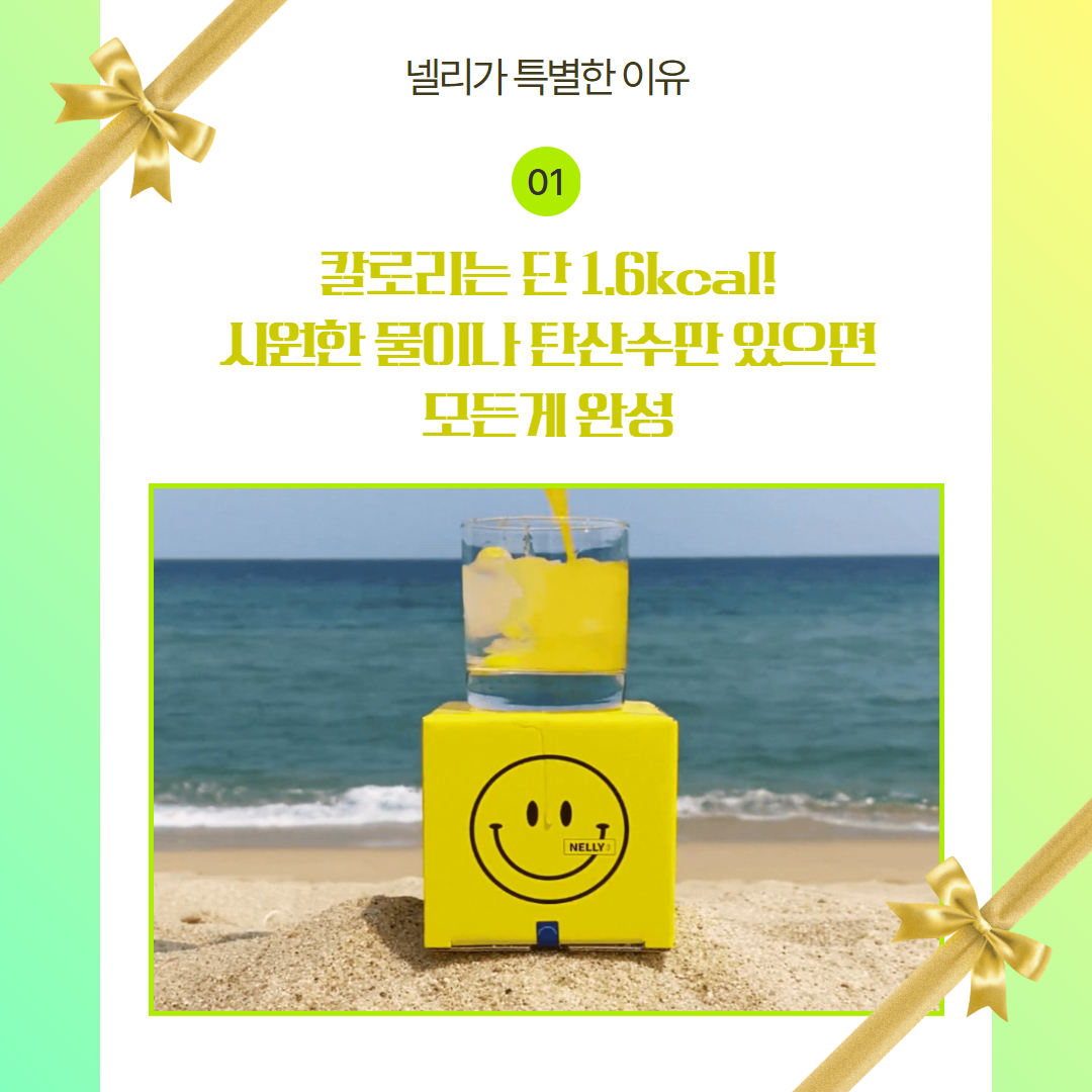 1.6kcal, 1g 당류로 더욱 가볍고 상큼하게!